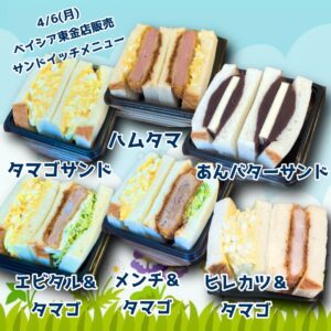 ※サンドイッチ各種はお休みさせていただきます。