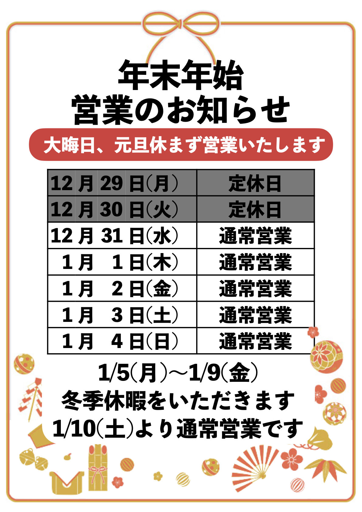 年末年始のお知らせ