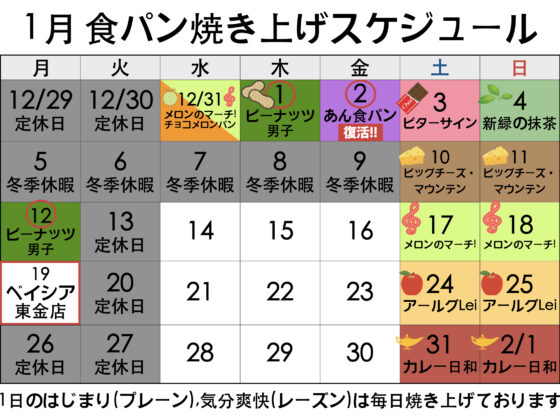 1月 焼き上げスケジュール